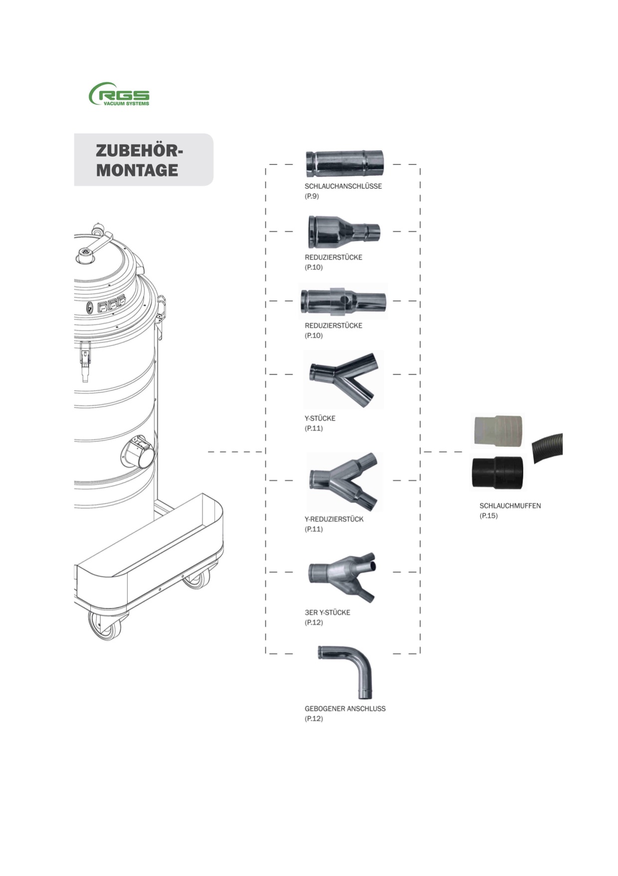 - Schnellkupplung für die Verbindung mit dem Saugrohr ∅40/50/70mm